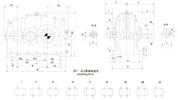 2、ZLY,ZLZ減速器的裝配型式及外形尺寸見(jiàn)圖2,表22