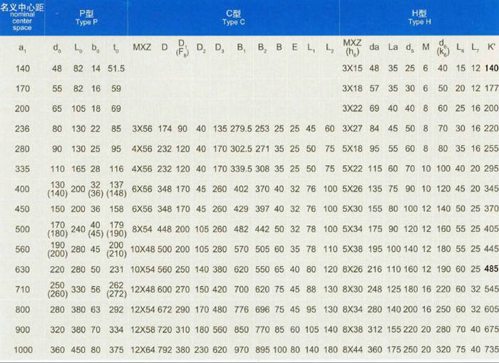 標(biāo)記示例:起重機(jī)減速器二級(jí)傳動(dòng),名義中心距a1=560mm公稱傳動(dòng)比20,裝配型式第VI種,軸端形式為P型,則標(biāo)記為:減速器QJR-D560-20-VIP